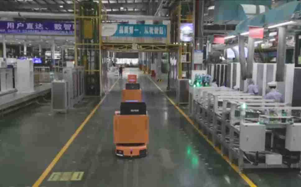 为车载冰箱物流配送打造的智能解决方案,,包含产中物流通过潜伏举升AMR搬运至线边,,,,产后成品物流智能仓储,,,,流程包含产中物流智能齐套入库,,线边安灯叫料AMR智能配送至线边,,,成品入库、、、出库,,通过无人堆高车机器人,,智能仓储管理替代人工作业管理,,,实现更高存储、、、更高效率、、、、更具柔性化的解决方案。。。。
